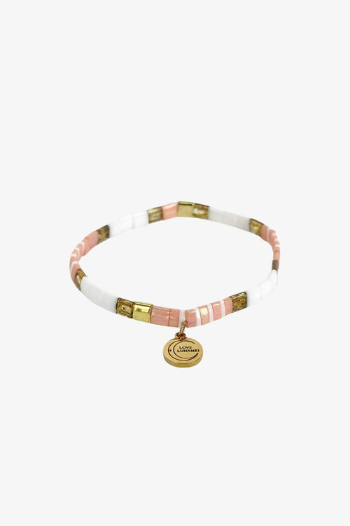 Introducing the Love Bracelet, in pink, white and gold. Lunamei's Love Bracelets are designed for stacking and layering and add a beachy vibe to any outfit!