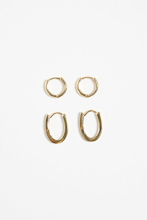 Oblong Hoop Huggie Set Gold Earrings
