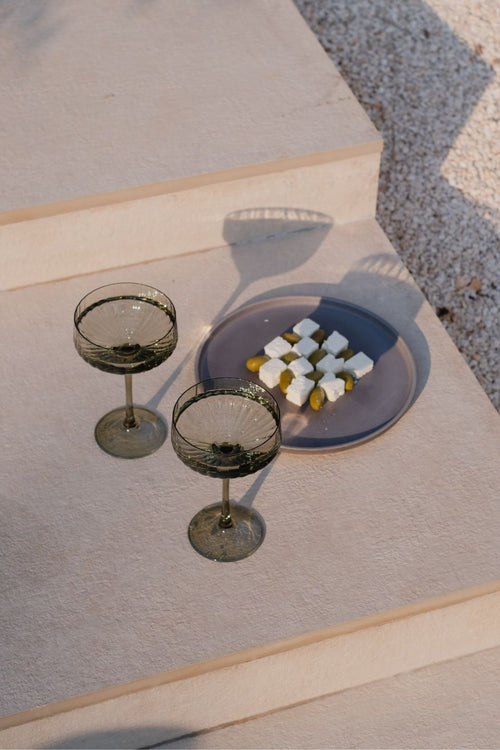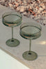 Olive Green Ribbed Set 2 Coupe Cocktail Glasses