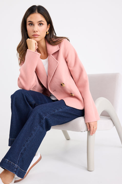 Prestige Blush Wool Blend Short Double Breasted Coat