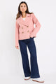 The Prestige Coat is the perfect statment coat in a beautiful blush pink. Designed in a beautifully tailored cropped silhouette, this coat features a classic double-breasted front, oversized lapels, and statement tortoiseshell buttons. The plush wool-blend fabric adds warmth and texture. Whether layered over casual denim or styled with tailored pieces, this coat is a luxurious staple for any wardrobe.