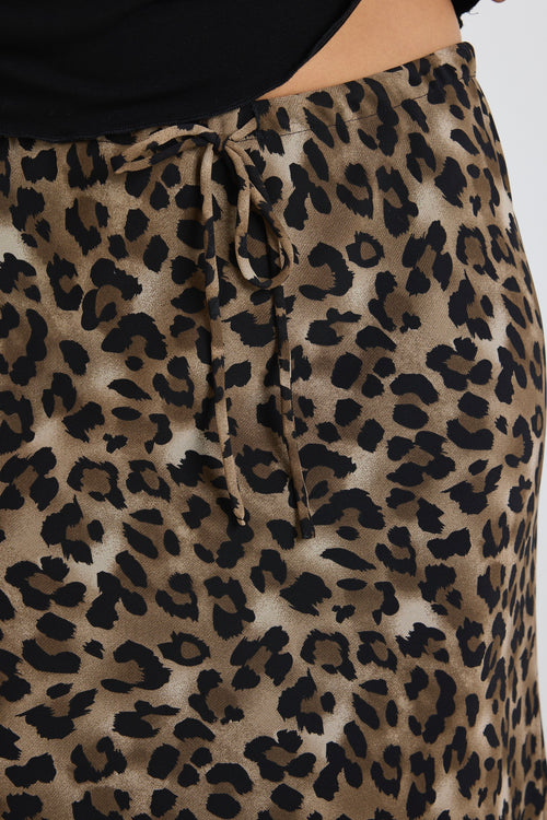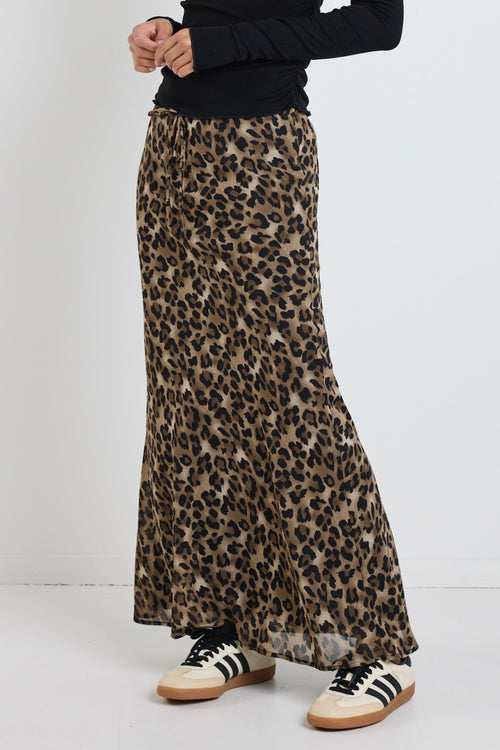 Rally Leopard Tie Waist Bias Maxi Skirt