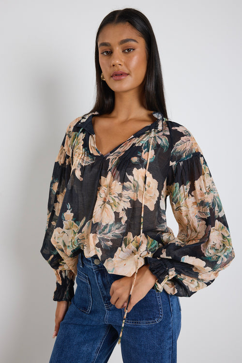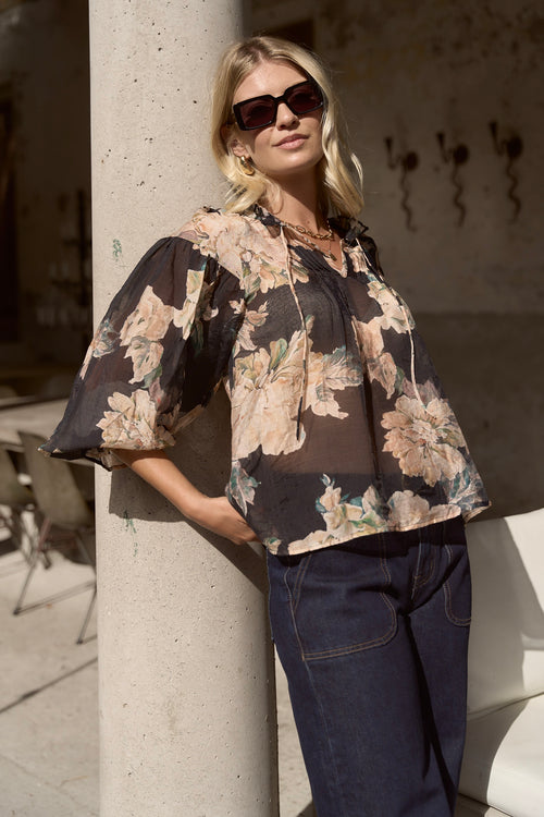 Float through your day in the effortlessly romantic Refined Navy Peach Floral Top. The soft floral print and flowing silhouette bring a dreamy, feminine vibe to any look, while the lightweight fabric feels like a gentle whisper on your skin.