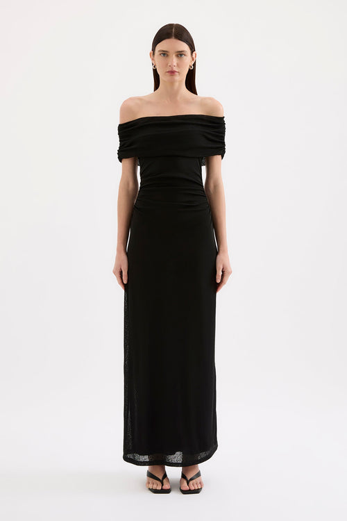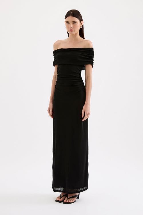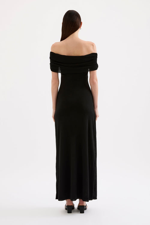 Rue Black Mesh Off Shoulder SS Midi Dress