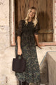 The Showcase Dress, a stunning blend of bohemian charm and effortless elegance. Crafted from a semi-sheer fabric, this dress features a beautifully intricate ditsy floral print in deep khaki tones. The dress is lined underneath for added comfort and coverage, making it as practical as it is pretty. The smocked bodice and puff sleeves add a romantic touch, while the tiered maxi skirt flows gracefully with every step. Whether worn with sandals for a daytime outing or dressed up with heeled boots, this piece is a statement in easy, refined style.