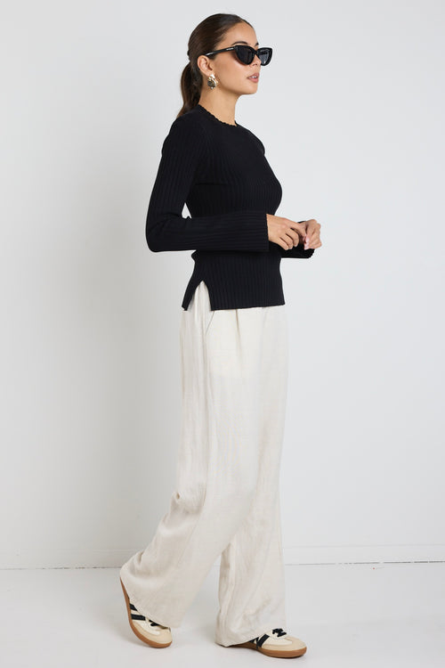 Understated yet ultra-chic, the Stately top is your secret style weapon for effortlessly polished outfits. With its sleek ribbed knit and modern hem splits, this top hugs you in all the right places while keeping things comfortable and refined.