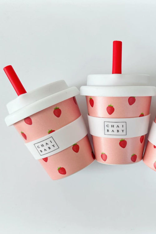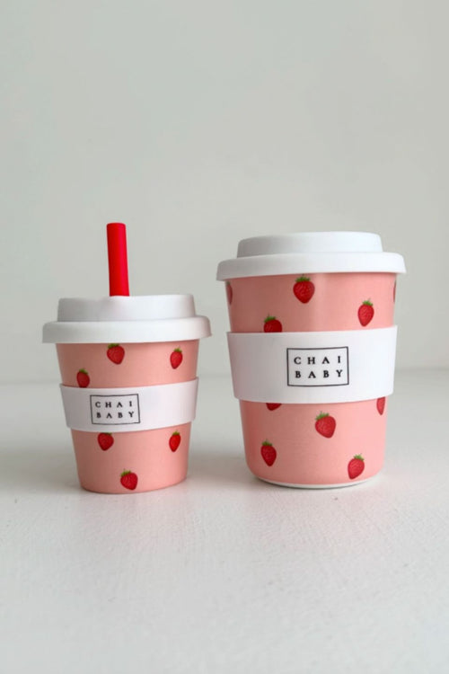 Introducing the Strawberry and Cream babyccino fluffy cup from Chai Baby, the perfect accessory for your little one’s morning treat!