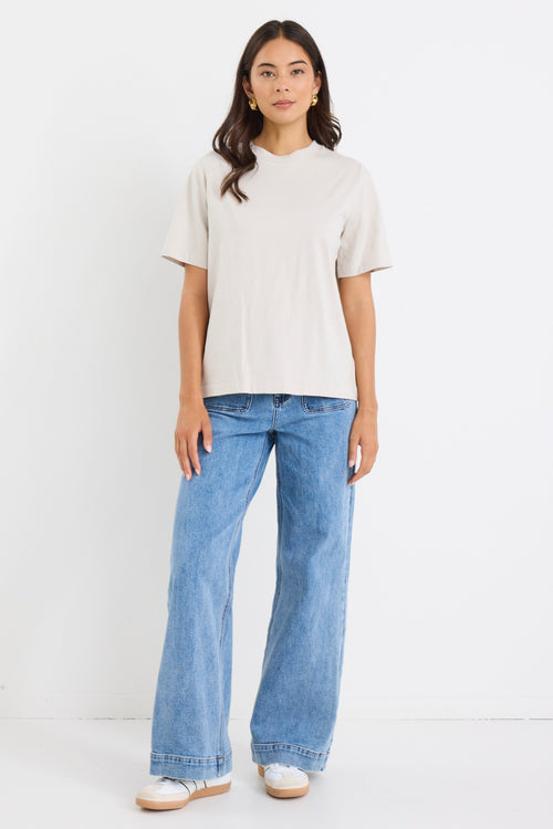 Great everyday T-shirt. Love the neutral colour, goes with everything. Lovely quality, the fit is boxy so if you don't want it too baggy, size down.