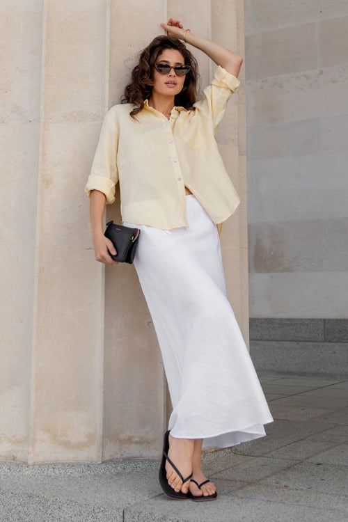 Originally bought this skirt in the natural colour and loved it so much got the white too! Such a flattering cut and style and great length.