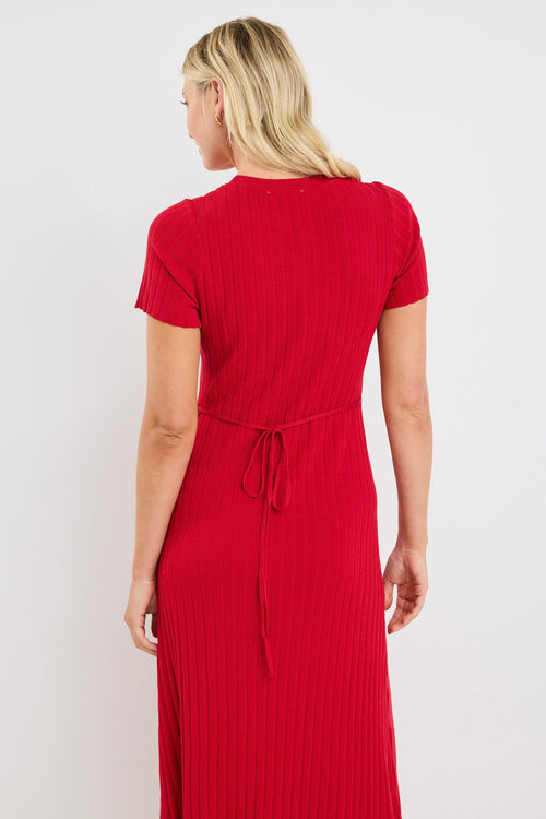Taken Red SS Crewneck Knit Maxi Dress