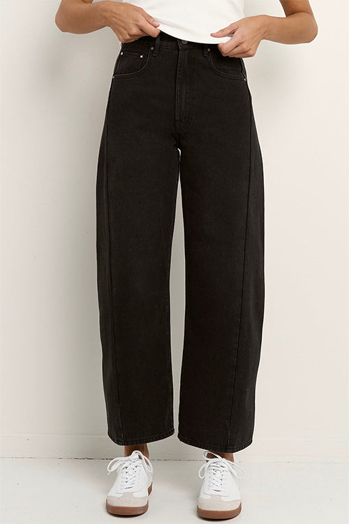 The much anticipated Varsity Black Wash Jean from Among The Brave is your go-to for cool, confident dressing with a polished twist. Cut in a flattering mid rise with a barrel leg, gentle tapering to the ankle and slightly cropped length, these jeans are the epitome of relaxed chic. Crafted in washed black denim that gets better with age, they’re made to pair effortlessly with everything from tanks and tees to blazers and boots.