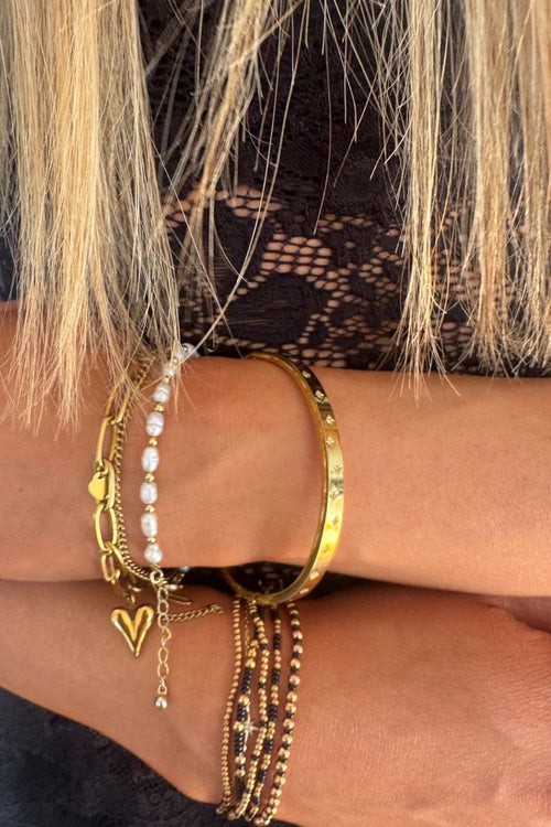 The Vogue Bangle in Gold by Lindi Kingi is a timeless accent piece with a touch of celestial charm. Its subtle star detailing catches the light beautifully, adding just the right amount of sparkle to your stack or solo moment. Whether you're dressing up or keeping it casual, this golden beauty brings refined elegance to every look.